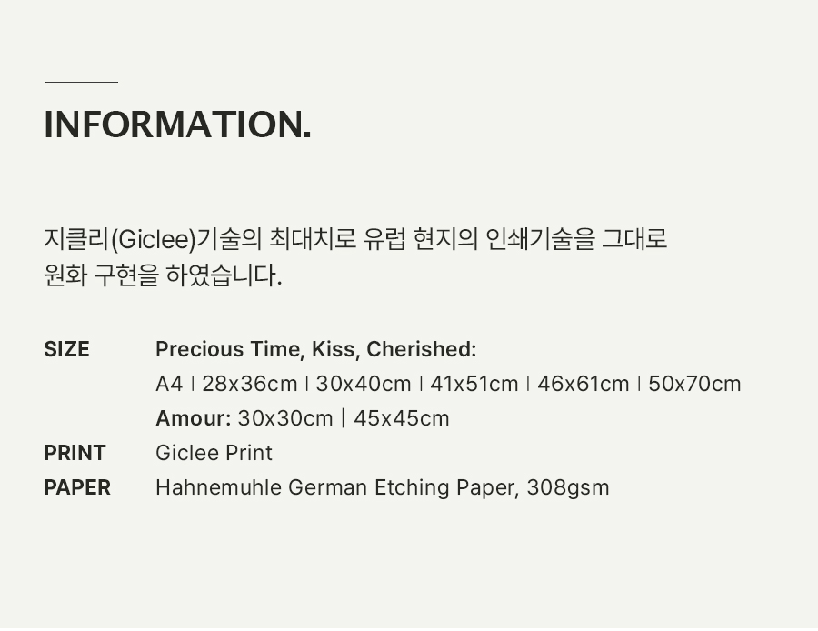 Precious Time, Kiss, Cherished: A4ㅣ28x36cmㅣ30x40cmㅣ41x51cmㅣ46x61cm | 50x70